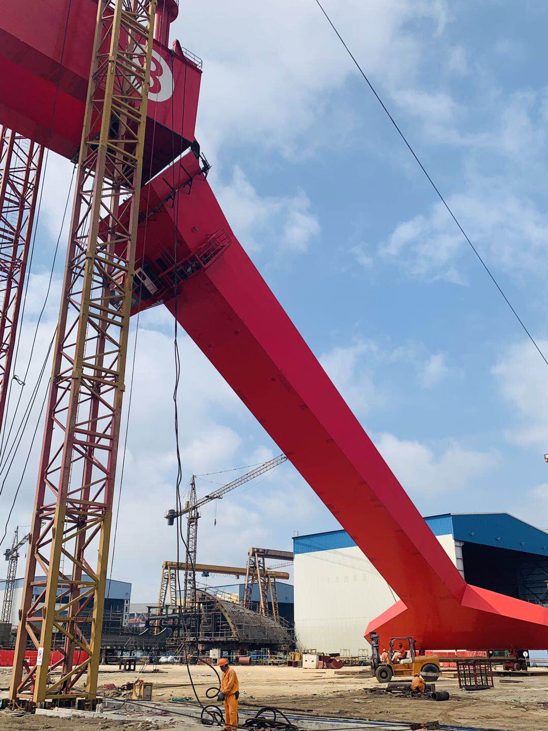 5月7日,隨著柔性腿吊裝及主梁抗風(fēng)拉設(shè)工作順利完成,公司承建的廣船國(guó)際400噸龍門(mén)吊安裝工程主體成形,標(biāo)志著項(xiàng)目取得階段性勝利,為后續(xù)機(jī)電安裝調(diào)試等后續(xù)工程打下了堅(jiān)實(shí)的基礎(chǔ)。