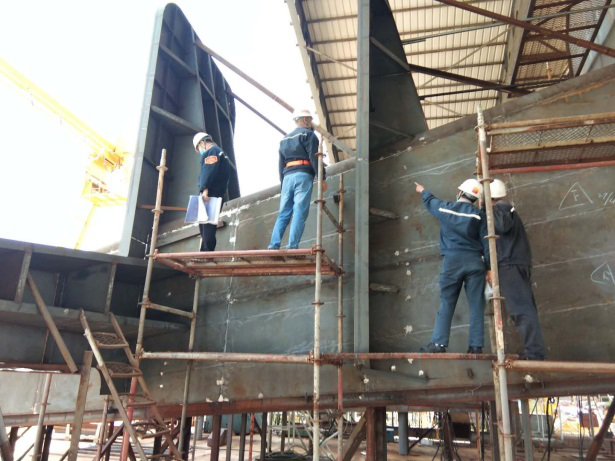 5月7日上午10點(diǎn),舾裝工程部邀請(qǐng)H1230軍代表攜精度質(zhì)檢人員前來(lái)萬(wàn)頃沙進(jìn)行H1230雷達(dá)桅整體焊接報(bào)驗(yàn)。報(bào)驗(yàn)一次性通過(guò),黃埔文沖公司計(jì)劃于5月11日船運(yùn)交付此雷達(dá)桅給造船一部。