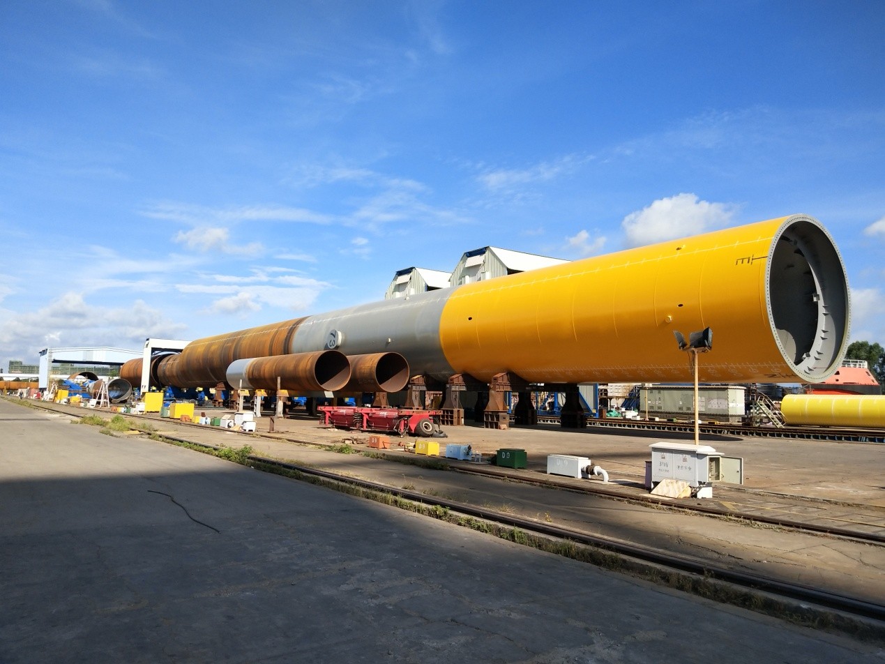 據(jù)了解,中廣核后湖單樁的77#樁總長91.87米、口徑8米、重達1339噸,從下料卷板、焊圓、拼段、涂裝到外場總組完成,生產(chǎn)一套樁用時20多天。面對種種困難,項目人員沒有退縮,想方設法積極應對,努力搶節(jié)點,推進制造任務按質按期完成,確保給業(yè)主方交付合格優(yōu)質的單樁產(chǎn)品。