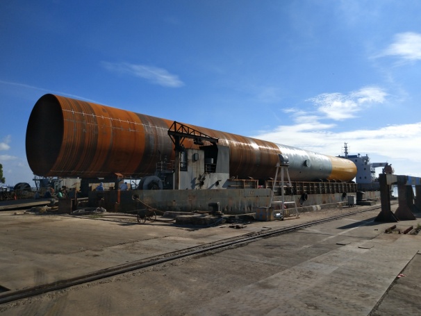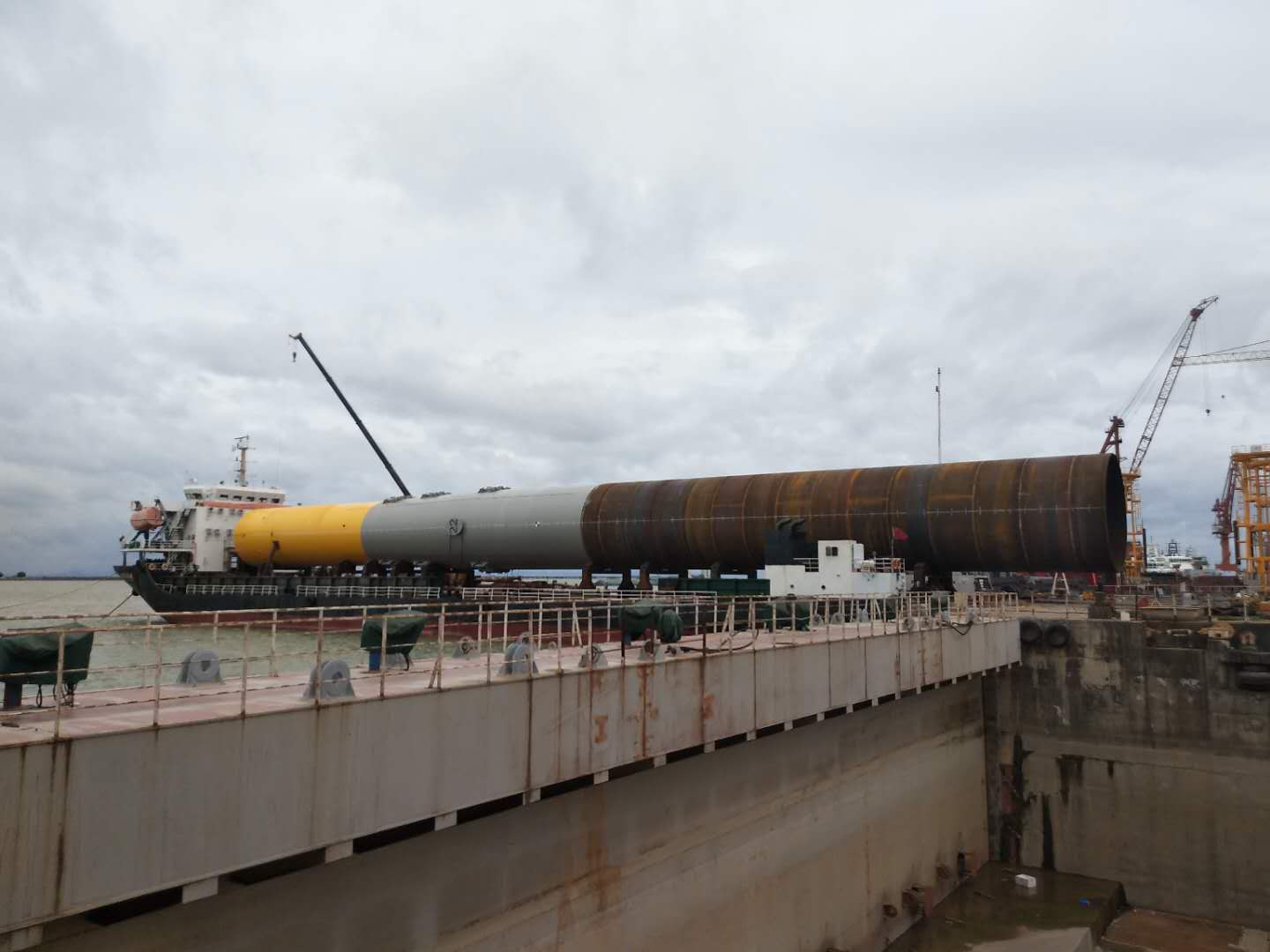 7月15日凌晨兩點多,歷經(jīng)1小時50分鐘的滾裝,中廣核后湖單樁項目首套單樁——77#樁的裝船作業(yè)于4點15分順利完成,第二套73#樁也于7月25日上午11點左右完成裝船交付,標志著中廣核后湖單樁項目首批單樁的生產(chǎn)交付任務全部完成!