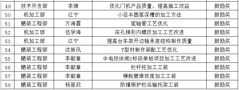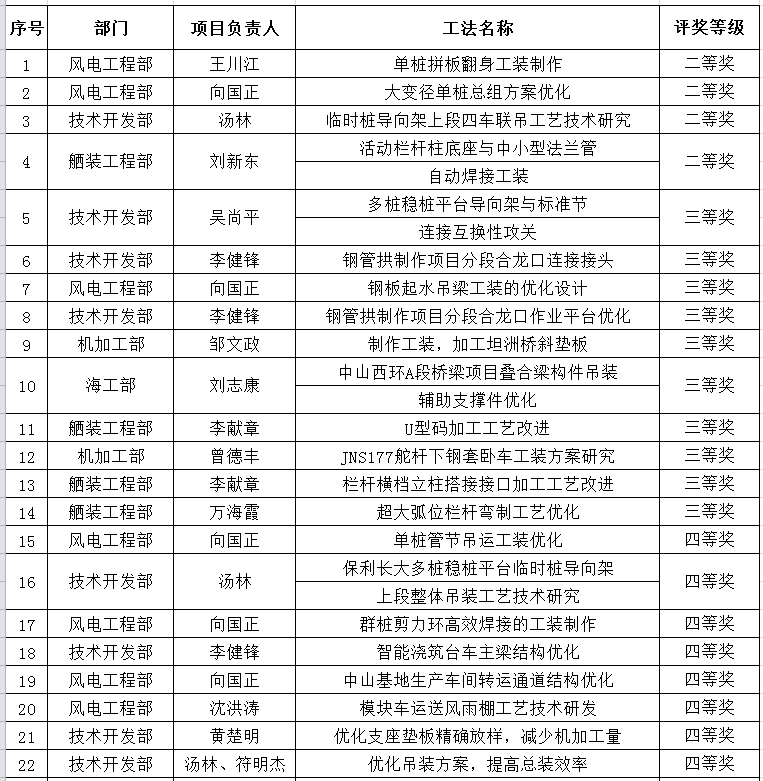 大會對公司2020年度先進集體和先進個人進行了表彰。其中,技術(shù)開發(fā)部等6個單位榮獲公司2020年度先進單位;合肥紫金鋼管股份有限公司等4個勞務(wù)工程隊榮獲公司2020年度優(yōu)秀勞務(wù)工程隊;周明睿等12名管理人員榮獲公司2020年度優(yōu)秀管理者;王春禮等48人榮獲公司2020年度優(yōu)秀員工;《海上風電單樁高效建造技術(shù)研究》等13個課題榮獲公司2020年度科技創(chuàng)新成果獎;《單樁拼板翻身工裝制作》等58個課題榮獲公司2020年度工法研究成果獎(詳見光榮榜)。