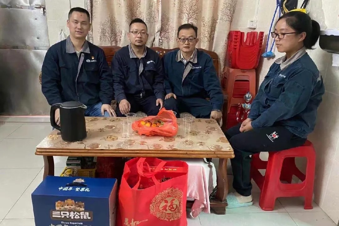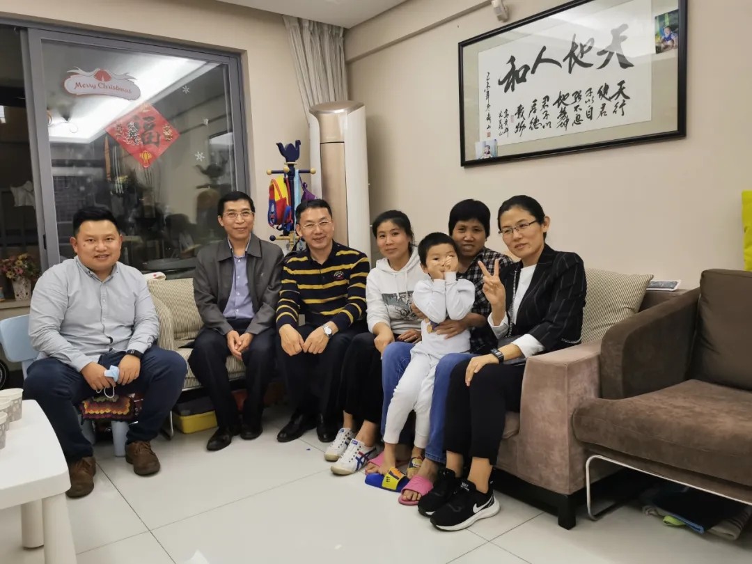 ▲黃埔文沖公司總經(jīng)理助理,公司執(zhí)行董事、總經(jīng)理陳宏領(lǐng)帶隊(duì)家訪慰問(wèn)骨干及家屬。